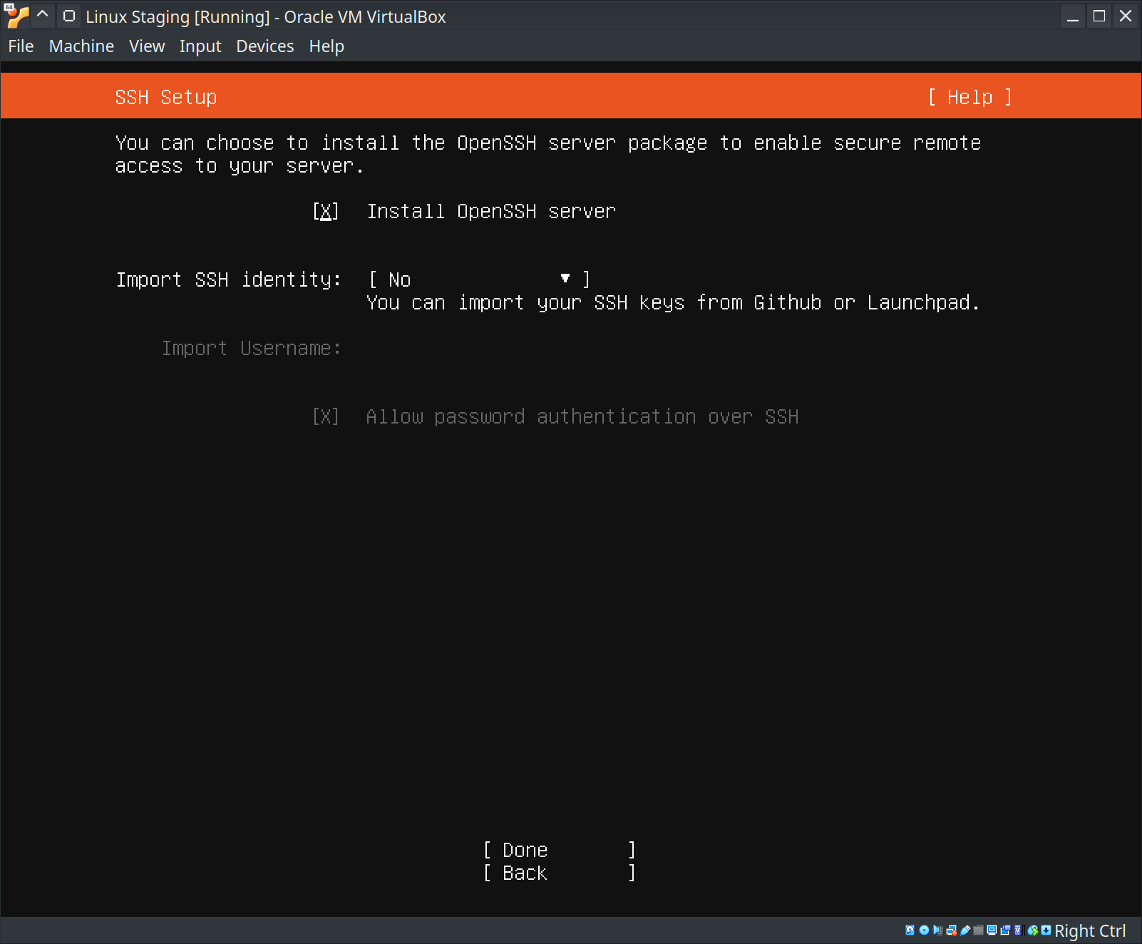 Remember the ssh keys you setup earlier? Let's install your public key to this virtual machine.